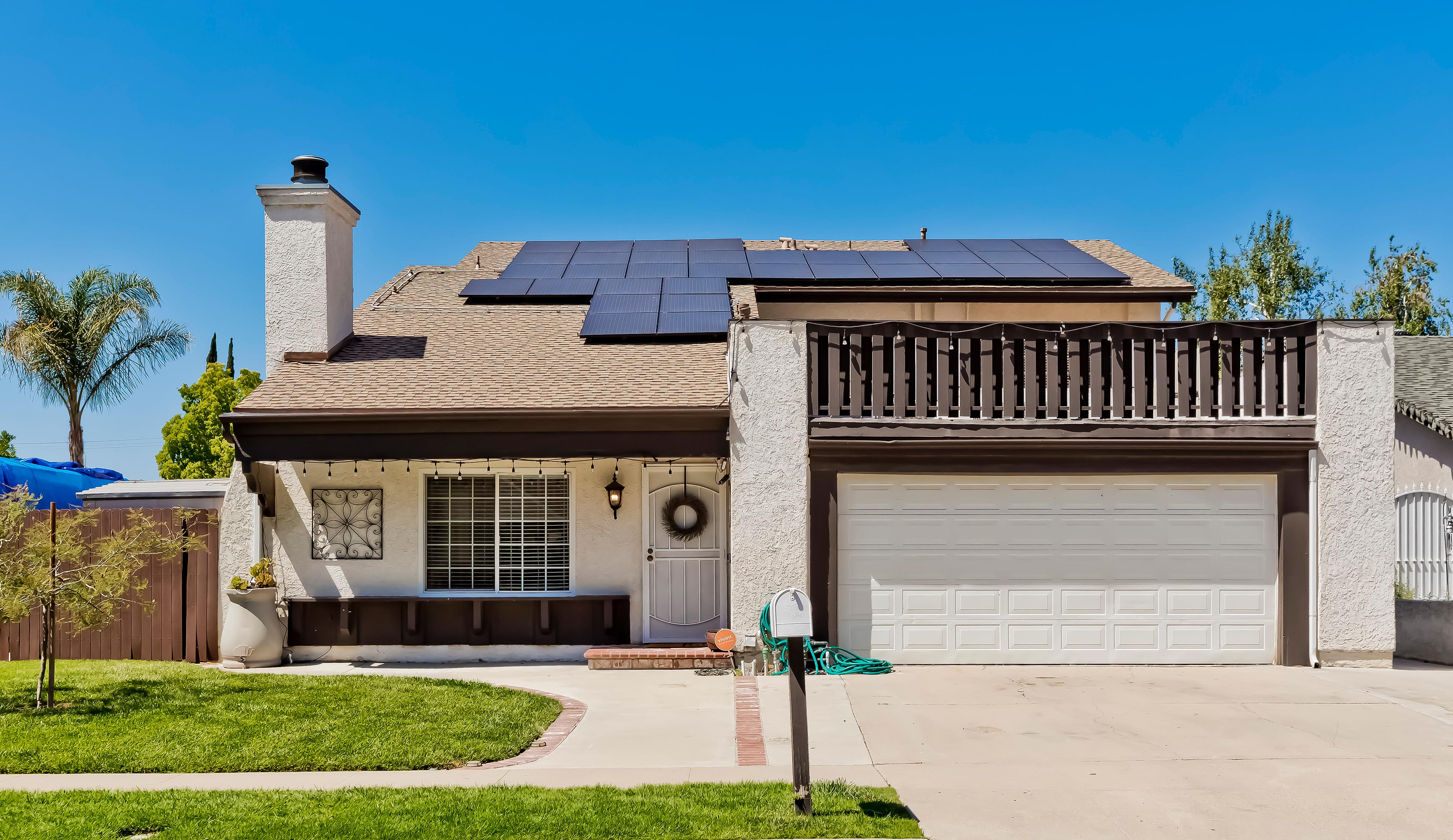 This spacious, upgraded Central Simi Valley home with 5 bedrooms and 3 baths in the main house features an attached, private 1 bedroom, 1 bath guesthouse with kitchenette! The entry opens to a gracious living room with soaring vaulted ceilings and stone fireplace. The formal dining room flows to a remodeled kitchen with stainless steel appliances and granite counters overlooking a large family room. A bedroom (currently used as a gym) and bathroom complete the first floor. At the top of the stairs is a 2nd family room along with 4 additional bedrooms and 2 baths. The sunny backyard features a new saltwater pool/spa and fire pit. 2nd driveway provides additional parking and leads to gated RV parking. Additional amenities include dual pane windows, dual zone A/C, newer roof, new tankless water heater, owned 8kw solar system, 2 Tesla Powerwalls, and a secret doorway adds a surprise!